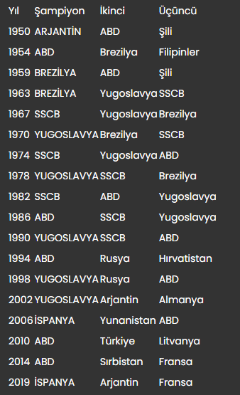 Basketbolda Filipinler, Japonya ve Endonezya'nın ev sahipliğinde yarın başlayacak 2023 FIBA Dünya Kupası'nda en çok şampiyonluk sevinci yaşayan ülkeler, ABD ve Yugoslavya oldu.