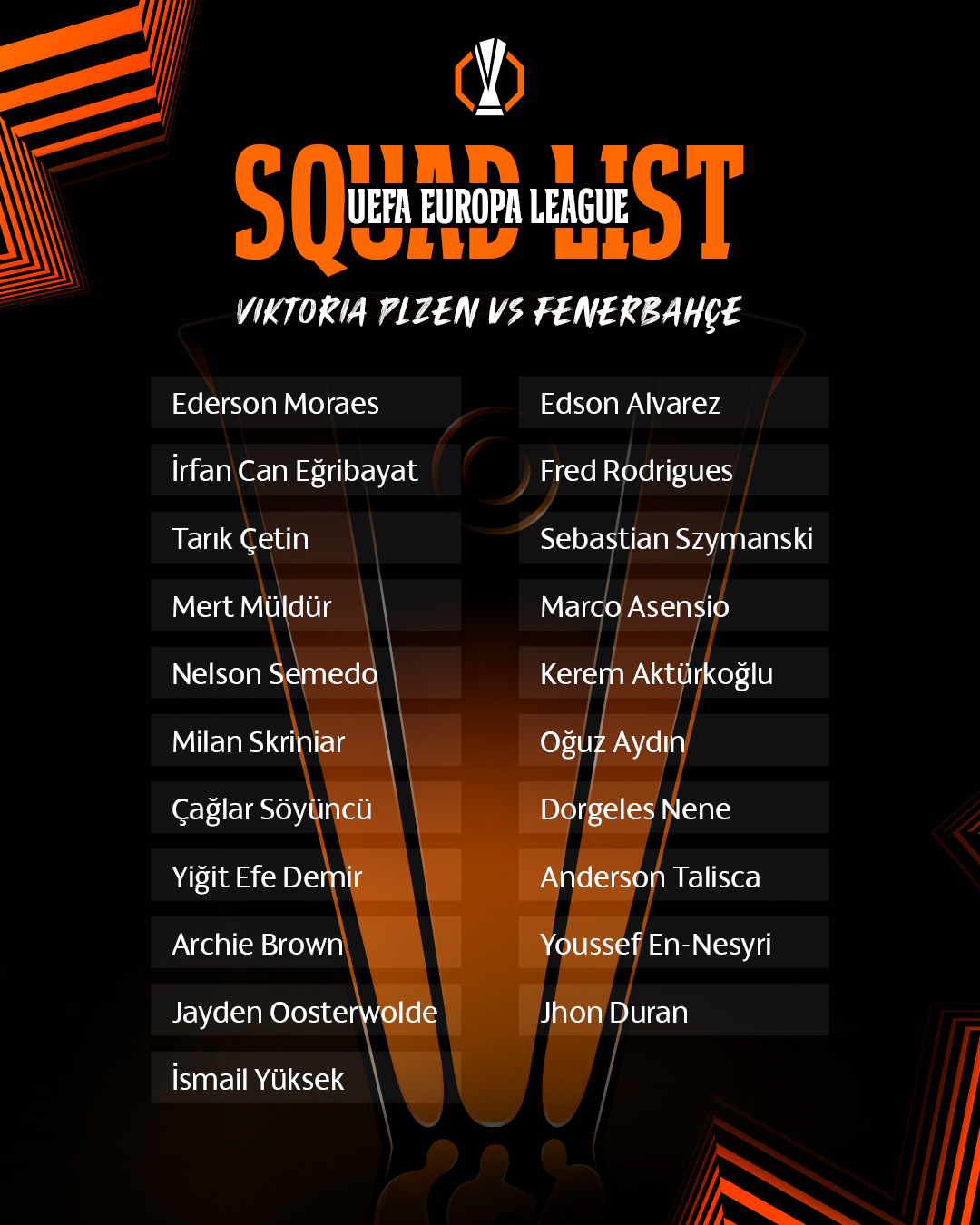 Fenerbahçe'nin UEFA Avrupa Ligi'nde oynayacağı Viktoria Plzen maçı kamp kadrosu açıklandı.