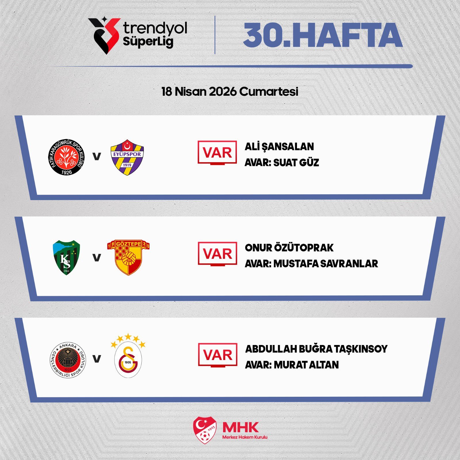 Trendyol Süper Lig’de 30. hafta kapsamında bugün oynanacak karşılaşmaların VAR hakemleri açıklandı.