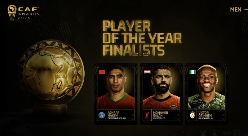 Afrika Futbol Konfederasyonu (CAF) tarafından yapılan açıklamada, Victor Osimhen'le birlikte Liverpool'dan Mohamed Salah ve PSG'den Achraf Hakimi, finale kalan diğer adaylar oldu.
