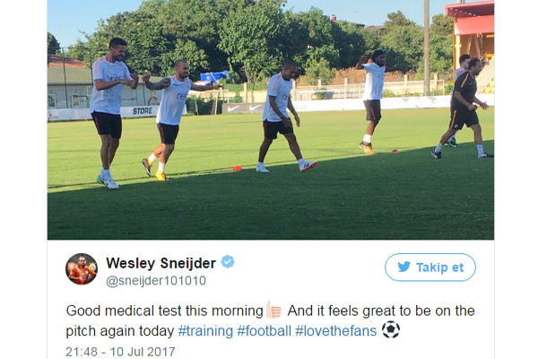Sneijder, Slovakya kampına götürülmeyen Hakan Balta, De Jong ve kadro dışı bırakılan Cavanda'yla antrenman yaptığı fotoğrafı da takipçileriyle paylaştı.
