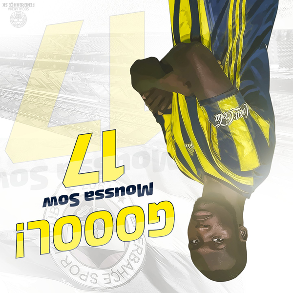 Feyenoord karşısında 22. dakikada jeneriklik bir gol daha atan Sow, Fenerbahçe'yi 1-0 öne geçirdi. Öte yandan Senegalli yıldız, Çaykur Rizespor ve Manchster United maçlarının ardından bu sezonki de 3. röveşata golüne imza attı.Fenerbahçe'nin sosyal medya hesabı ise, Sow'un golünü bu görselle duyurdu;
