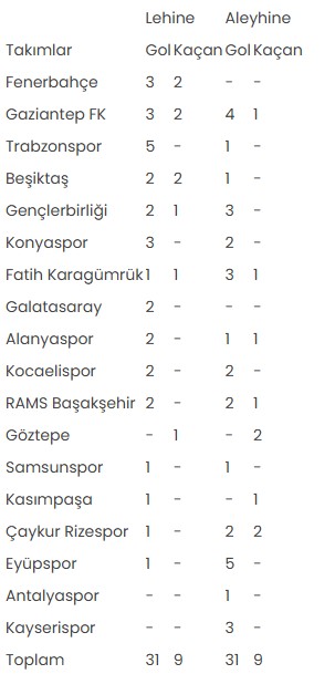 Göztepe, Kasımpaşa, Galatasaray ve Fenerbahçe ise bu sezon ligde penaltıdan hiç gol yemedi.