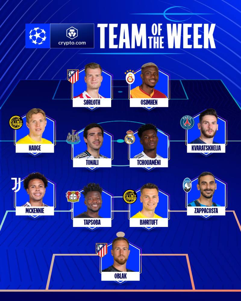 Oblak, Zappacosta, Bjortuft, Tapsoba, McKennie, Thcouameni, Tonali, Kvaratskheila, Hauge, Osimhen, Sörloth