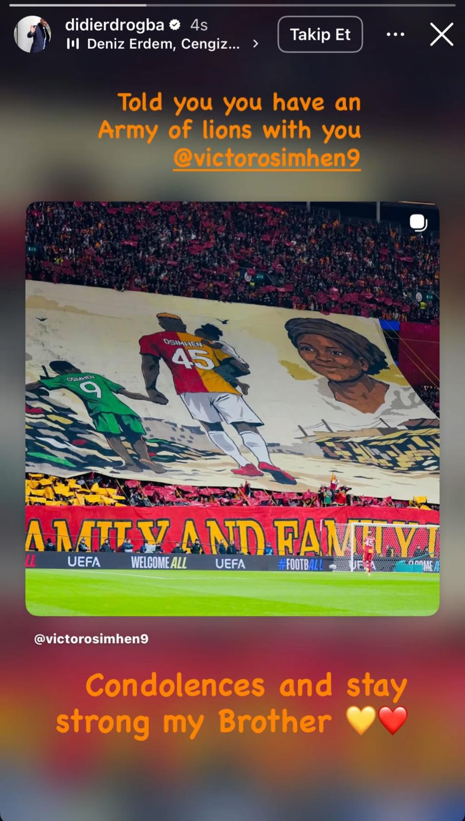 Bir dönem Galatasaray'da forma giyen efsane futbolcu Didier Drogba, sarı-kırmızılı ekibin yıldız golcüsü için flaş bir paylaşımda bulundu.