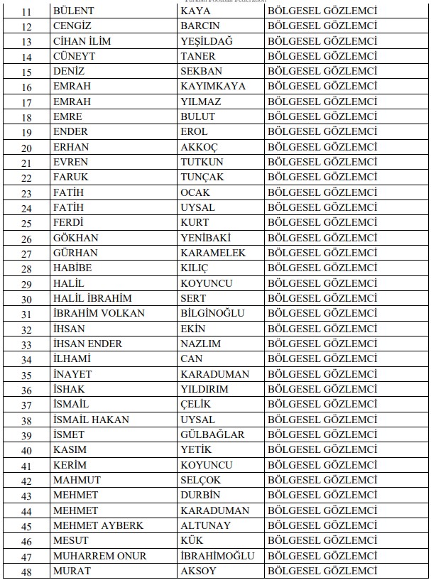 TFF'nin internet sitesinden yapılan açıklamada, "Bahis soruşturması kapsamında bahis oynadığı tespit edilen bölgesel hakem, bölgesel yardımcı hakem ve bölgesel gözlemcilerin futbol disiplin talimatının 57. maddesi uyarınca 29 Aralık tarihinden itibaren tedbirli olarak PFDK'ye sevk edilmesine karar verilmiştir." denildi.